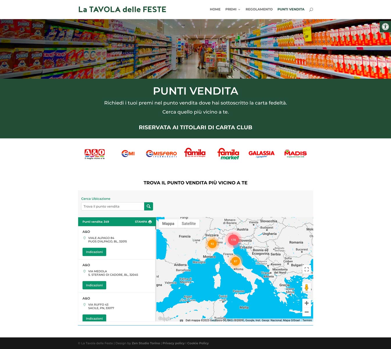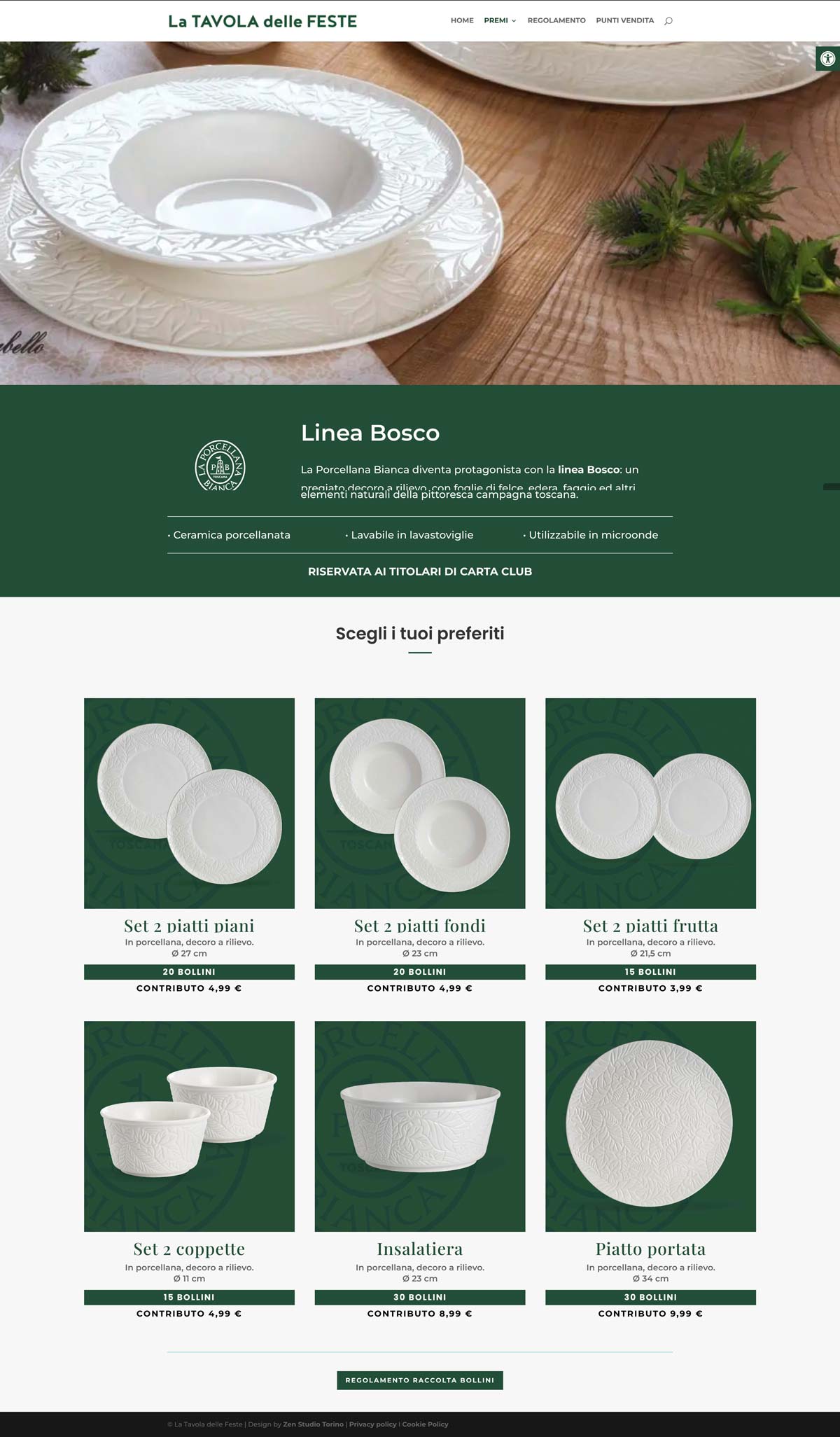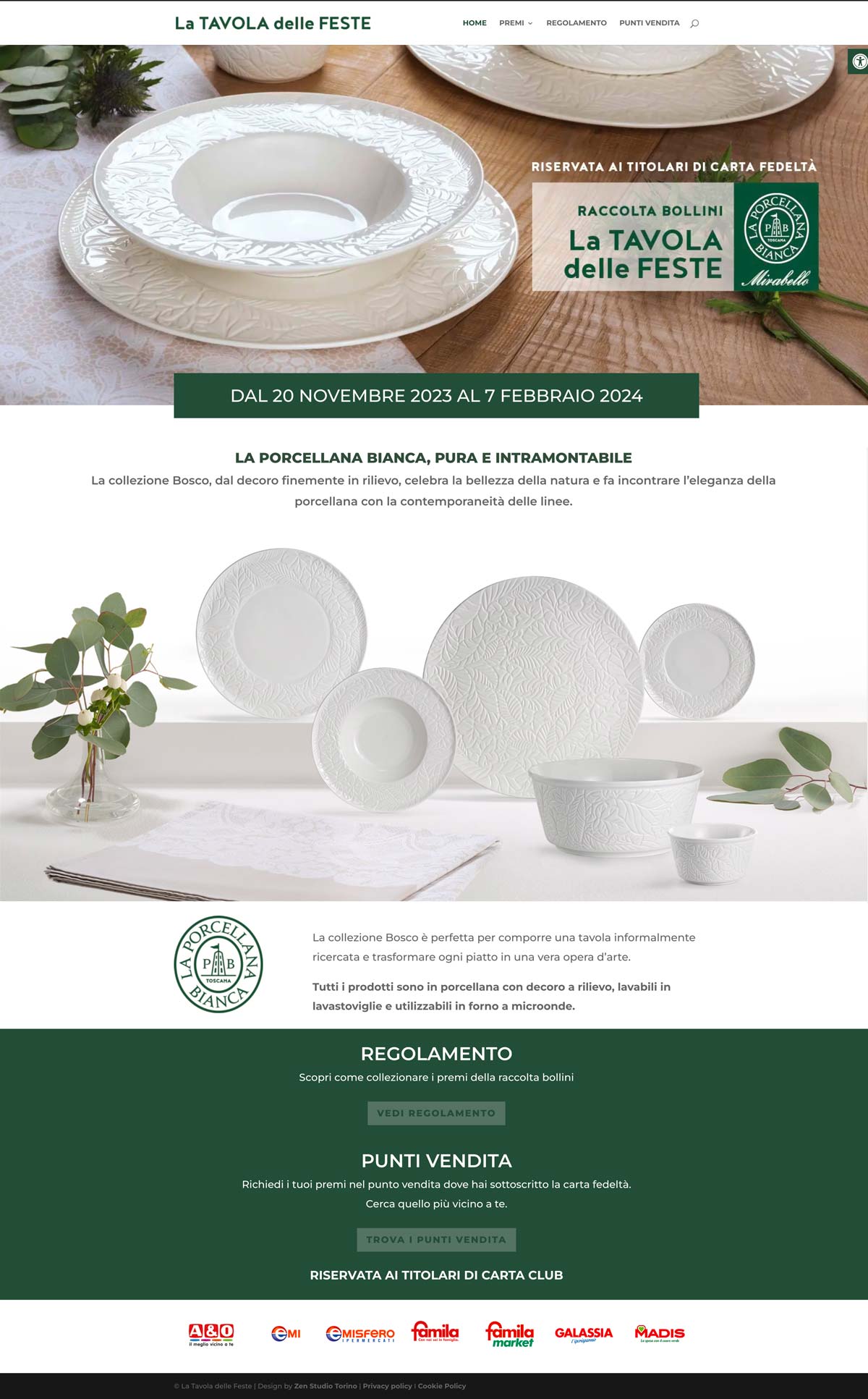 Progettazione del sito La Tavola delle Feste, concorso raccolta bollini per la Grande distribuzione